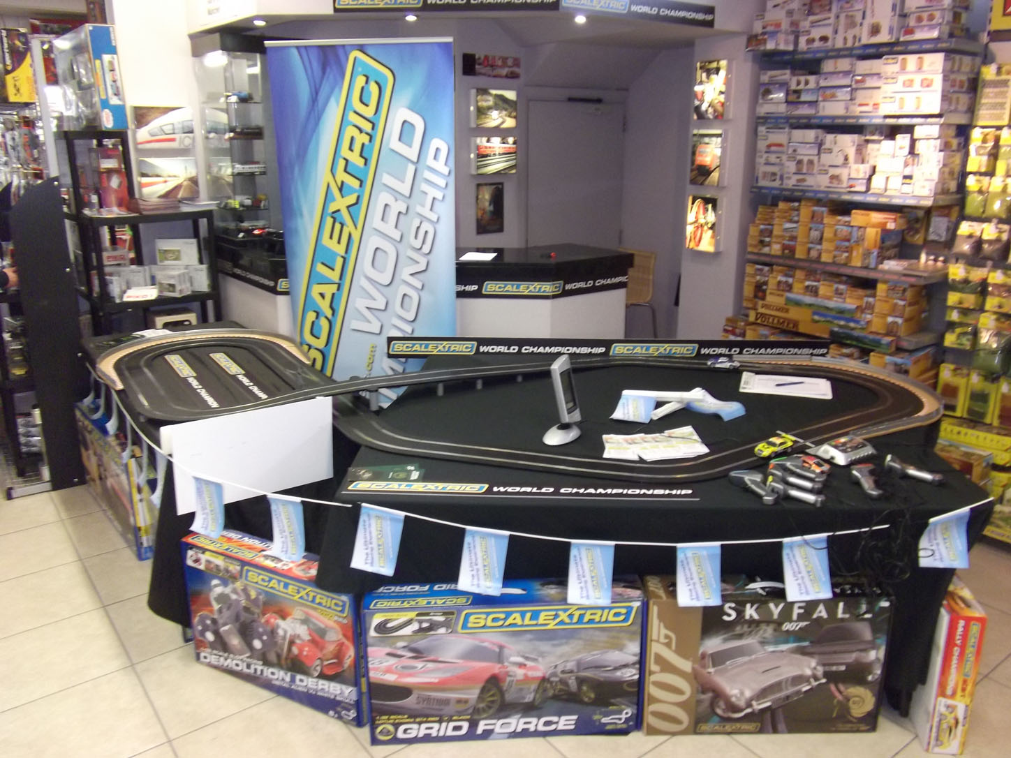 The Scalextric Shop held their annual Autofest on the 26th of October at The Engine Shed the famous retail side of Gaugemaster UK. The event was a great showcase for the company as many of the shop visitors had come along to spend their hard earned money on the amazing range of model railway paraphernalia on offer. This has the added benefit of letting the local Slot Racers show off the sport too all and sundry and also meant that any youngster accompanying an adult knew what to ask for in the run up to Christmas, especially after entering the Scalextric World Championship on the specially set out track within the shop.